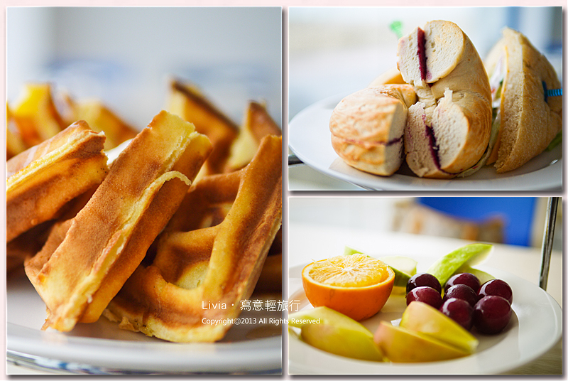 第一層是果醬貝果和三明治,很貼心的都幫我們切成兩份囉!簡單的的搭配,味道也很 OK ~